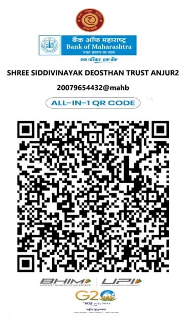 (धनादेश (चेक) श्री सिद्धिविनायक देवस्थान ट्रस्ट, अणजूर Shree Siddhivinayak Devasthan Trust, Anjur नावे असावा व तो क्रॉस ऑर्डर करावा.)